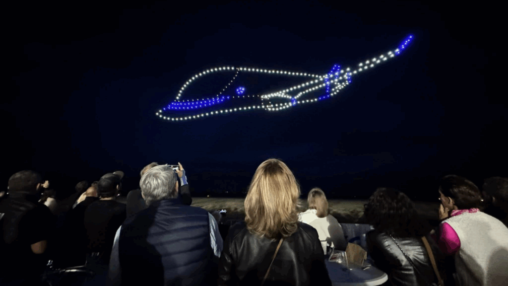 Les drones ont reconstitué dans le ciel nocturne les silhouettes des avions emblématiques qui ont été produits par les usines Potez au fil des décennies. Les spectateurs ont ainsi pu voir défiler les contours lumineux des avions de chasse historiques, du prestigieux Concorde, des avions de ligne civils, ainsi que de l’imposant Beluga d’Airbus.